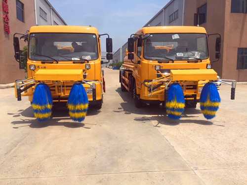 此次服務(wù)安徽高速公路的兩臺東風(fēng)天錦灑水車,采用工程黃涂裝,用于高速公路的路面重新,以及高速護(hù)欄的清洗使用,同時(shí)我公司生產(chǎn)的東風(fēng)天錦洗掃車也可用于高速路面清理的作用。