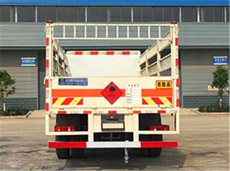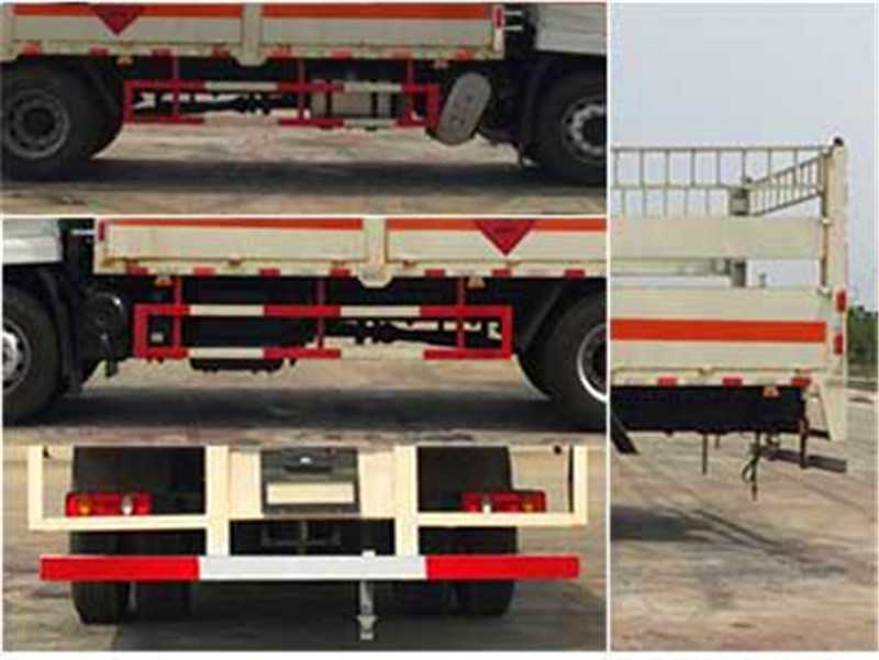 其它 | 該車適用于運輸危險物品為危化品運輸車。主要用于運輸具有獨立容器(瓶)包裝的液化石油氣,丁烷,乙炔,乙烷,丙烷,丁烯,打火機或打火機加油器,二氧化碳,壓縮氧(氮,空氣,氦,氬,氖),類項號:2.1,2.2。該車運輸的介質為2.1項易燃氣體時,車輛采用”易燃氣體”標識牌,運輸的介質為2.2項非易燃無毒氣體時,車輛采用”不燃氣體”標識牌。整車長/軸距/前懸/后懸對應關系為(mm):9000/5000/1430/2570, 8600/4700/1430/2470,該車安裝帶有衛星定位功能的行駛記錄儀,僅采用前盤制動器和安裝ABS以及前置消聲器的底盤,采用子午線輪胎,前置排氣管,安裝限速裝置,限速80km/h。安全裝置為導靜電帶,用于防止靜電。側防護和后防護裝置材料材質為Q235B碳鋼,側防護與箱體底部焊接連接,后防護裝置與車架采用焊接連接。后防護截面尺寸(mm):140×50,離地高度為500mm。ABS型號:3631010-C2000,ABS 8;ABS生產廠家:東科克諾爾商用車制動系統(十堰)有限公司。 隨底盤選裝駕駛室前面罩,選裝側窗玻璃;駕駛室頂部中間三個裝飾燈為選裝件;前霧燈為選裝件;駕駛室前臉擾流罩為選裝件。 | ||