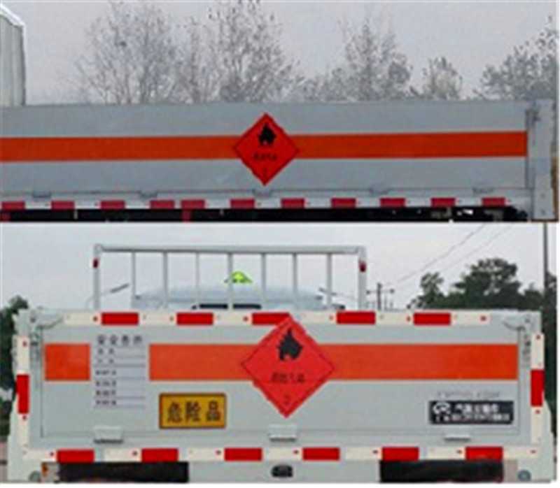 其它 | 該車適用于運(yùn)輸危險(xiǎn)品為危險(xiǎn)貨物運(yùn)輸車。隨底盤選裝駕駛室,選裝無倉欄結(jié)構(gòu)。主要用于運(yùn)輸具有獨(dú)立容器(瓶)包裝的液化石油氣,丁烷,乙炔,乙烷,丙烷,丁烯,打火機(jī)或打火機(jī)加油器,二氧化碳,壓縮氧(氮,空氣,氦,氬,氖),類項(xiàng)號:2.1,2.2.該車運(yùn)輸?shù)慕橘|(zhì)為2.1項(xiàng)易燃?xì)怏w時(shí),車輛采用”易燃?xì)怏w”標(biāo)識牌,運(yùn)輸?shù)慕橘|(zhì)為2.2項(xiàng)非易燃無毒氣體時(shí),車輛采用”不燃?xì)怏w”標(biāo)識牌.整車長/軸距/后懸長的關(guān)系:5100/2600/1319,5100/2800/1119,5100/3000/919;該車安裝帶有衛(wèi)星定位功能的行駛記錄儀,僅采用前盤制動器和安裝ABS以及前置消聲器的底盤,采用子午線輪胎,安裝限速裝置,限速80km/h.專用裝置為固定用卡槽.ABS型號及廠家:APG3550500A,浙江亞太機(jī)電股份有限公司。僅采用發(fā)動機(jī)LJ4A15Q6,對應(yīng)油耗申報(bào)值為9.1L/100km。 | ||
